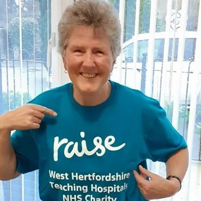 Linda Pottinger raised £13,000 after cancer treatment at Watford General Hospital in 2023.