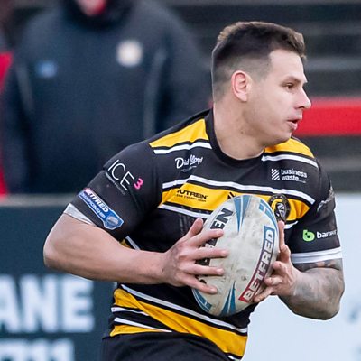 York Knights try scorer Jesse Dee speaks to Andy Atkinson after their 24-16 victory over Oldham in the Championship, retaining the top spot in the league.