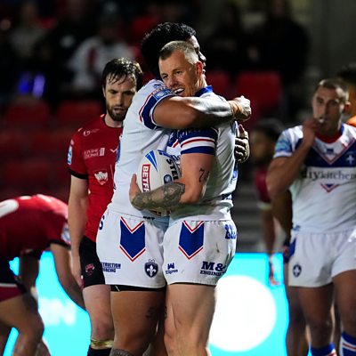 Action and reaction as play-off bound Wakefield Trinity win at Salford in final match of regular Super League season. {Commentary: James Deighton & Barry Eaton}