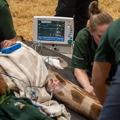 Vets at Woburn Safari Park performed the procedure on Sahara - who weighs half a ton!