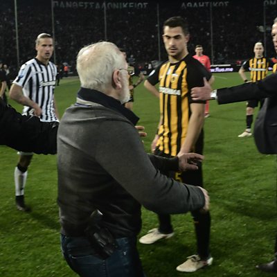 What can be done to fix Greek football? With the league suspended after the PAOK president Ivan Savvidis invaded the pitch to protest against a late goal being disallowed for his side, we speak to Herbert Hübel, the man leading the Fifa monitoring committee that oversees football in Greece. Freddie Kanoute, the former West Ham and Tottenham striker calls for football in his native Mali to be "reshaped" in a bid to rejuvenate the sport in the country. Former Scottish Professional footballer David Weatherston tells Mani Djazmi how anxiety stopped him fulfilling his potential and ended his career. 75-year-old England international John Shannon Jnr and his most committed supporter, 101-year-old John Senior, explain why veteran football is flourishing. Photo: PAOK president Ivan Savvidis takes to the pitch carrying a handgun in his waistband after the referee ruled out a last minute goal for his side against AEK Athens. Credit: STRINGER/AFP/Getty Images)