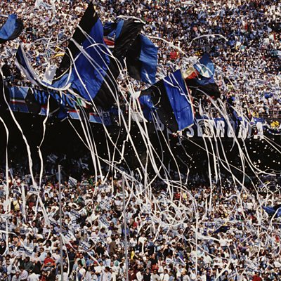 AC Milan goalkeeper Asmir Begovic looks ahead to the Derby della Madonnina. And we hear from San Diego Loyal coach Carrie Taylor about the launch of Landon Donovan's new team. Photo: Inter Milan football fans during a Serie A match against A.C. Milan at the San Siro Stadium in Milan (Credit: by David Cannon/Getty Images).
