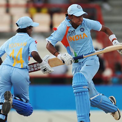 On this week's Stumped with Alison Mitchell, Jim Maxwell and Sunil Gupta, we hear more about how India's captain Harmanpreet Kaur began her cricketing journey. Kaur was born in Moga, in the north of India and was coached by Kamaldeesh Singh Sodhi. His son Yadwinder, who also coached her, explains how his father first spotted her talent, and how she's grown into a player to step up for her team, most notably after scoring 171 against Australia in the 2017 World Cup. The women's world cup is really heating up with matches going down to the wire and the pressure becoming more intense. Hosts India have gone from the highs of beating Sri Lanka and Pakistan to losing against South Africa and tournament favourites Australia. The team discuss the state of play as the group stage draws ever closer to the end. Plus, we hear from 2017 India World Cup finalist Punam Raut, who told us that despite losing the 2017 final in England, the team were greeted like winners upon their return to India. Photo: Indian cricketers Harmanpreet Kaur (R) and Poonam Raul take a run during the ICC Women's World Cup Twenty20 semi final match between Australia and India at the Beausjour Cricket Ground in Gros Islet, Saint Lucia on May 13, 2010. (Credit: AFP via Getty Images)